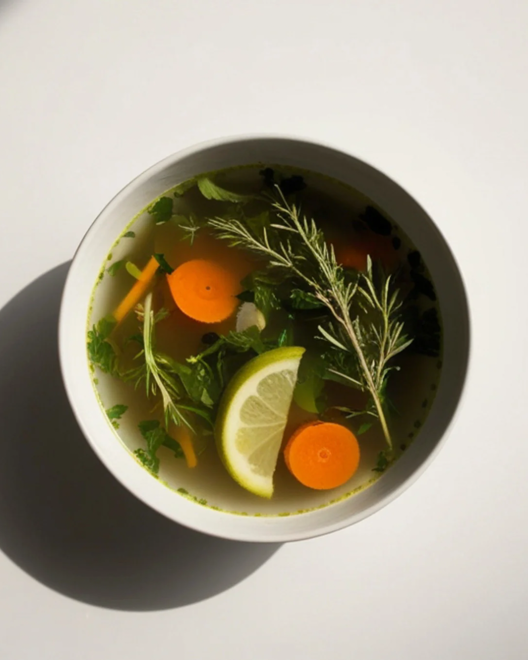 This broth is designed to provide collagen, glycine, zinc, and fat-soluble vitamins while remaining light enough to bridge winter into early spring. The addition of fresh herbs and lemon enhances antioxidant capacity and supports digestion.